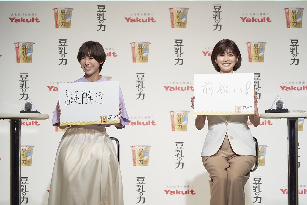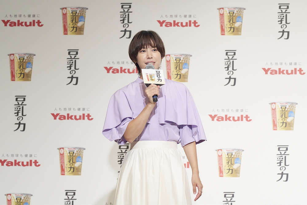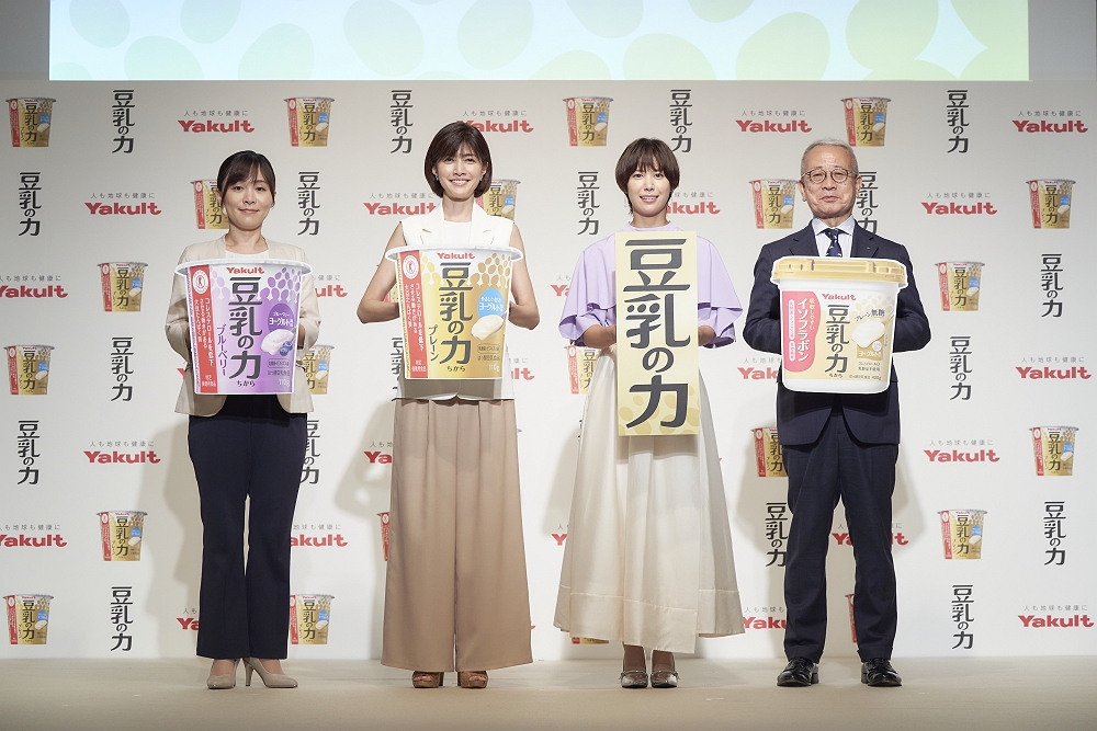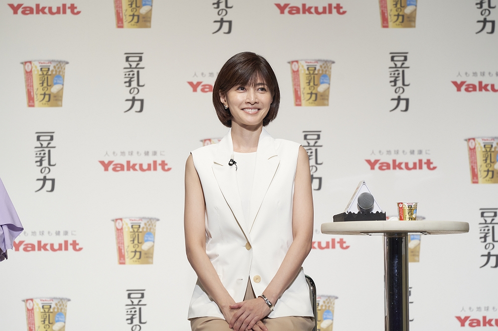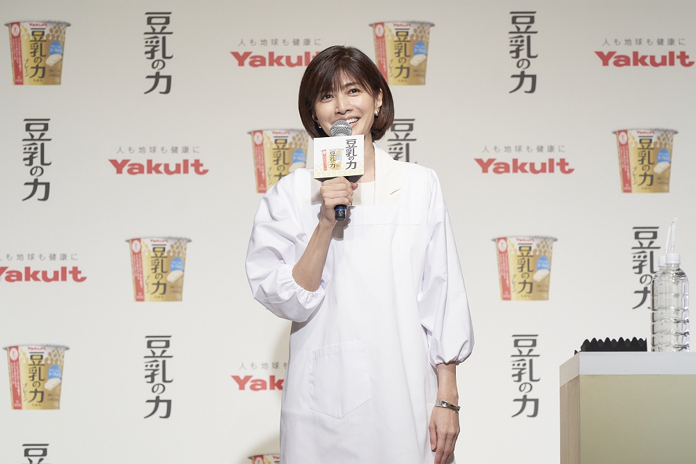 ヤクルト本社は2024年10月3日、東京・六本木のベルサール六本木にて新商品「豆乳の力」の商品説明会とCM発表会を開催した。イメージキャラクターの内田有紀と、イベントゲストとしてフェンシング選手の宮脇花綸が登壇し、会場を盛り上げた。