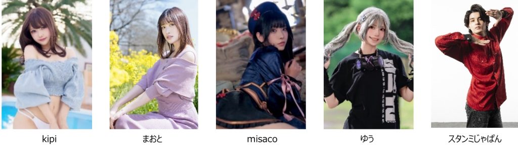 10月26日(土)には、しょこら、すずら、猫田あしゅ、みぃこが出演。27日(日)には、kipi、まおと、misaco、ゆう、スタンミじゃぱんが登場する[1]。これらのコスプレイヤーたちは、池袋コスプレPR大使や人気ストリーマーとして知られている。