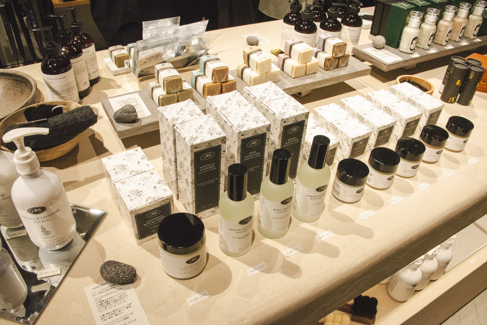 新店舗では、アパレルやキッチン用品、新設のヘルスアンドビューティー部門など、約350種類の新商品を展開。特に注目を集めているのが、「黒の4つの香り」をテーマにしたルームフレグランスとボディケア製品だ。調香師のSariさんは「木漏れ日の中の影に潜んだときの涼やかな安らぎを香りで表現するなど、黒を多角的に解釈した」と語る。